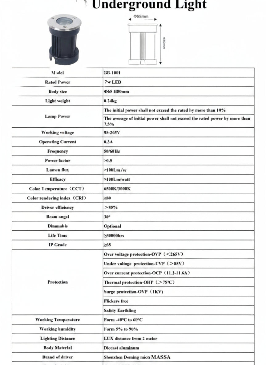 سبوت ليد اب لايت لإضاءة الحدائق والممرات قوة الإضاءة : 1 وات لون الإضاءة : اصفر 3000 K قطر الفتحة 6 سم القطر الخارجي 6.5 سم الطول : 7.5سم العمر الافتراضي : 30000 ساعة عمل IP : 65 ضمان 3 سنين