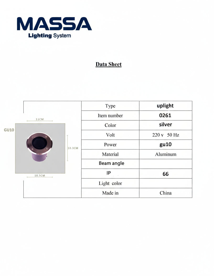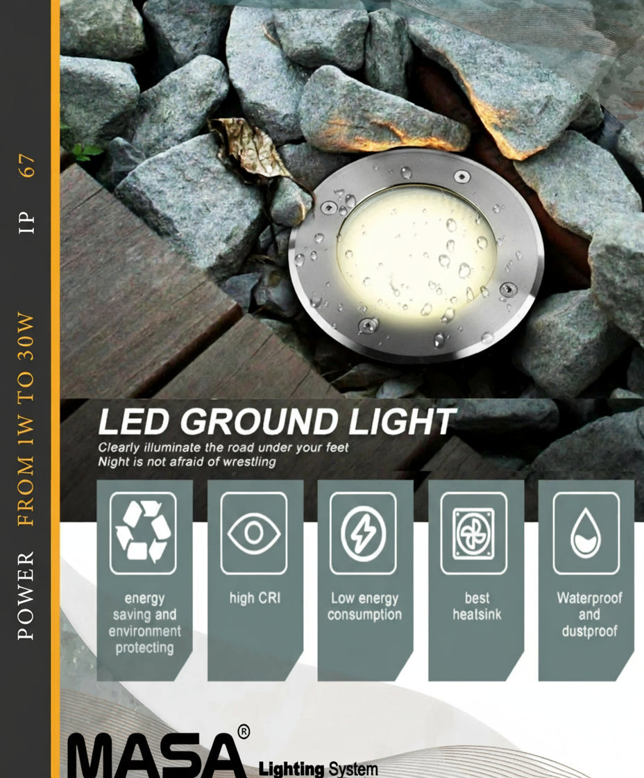 سبوت اب لايت لإضاءة الحدائق والممرات . IP :- 65 قطر الفتحة 10.5 سم القطر الخارجي 11سم الطول : 10.3سم