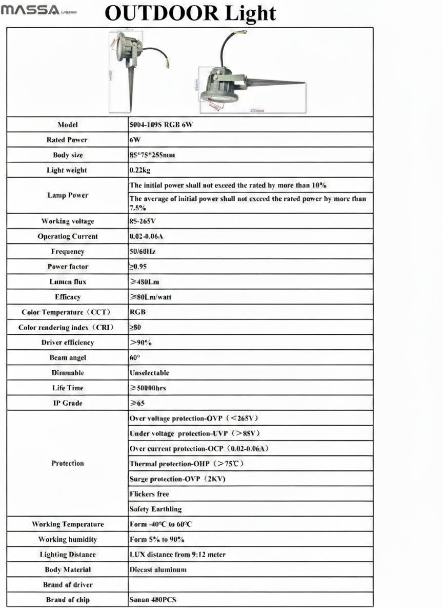 سبوت ليد حربه لإضاءة الحدائق والممرات . قوة الإضاءة :- 6 وات . لون الإضاءة  :- RGB العمر الافتراضي  :- 30000 ساعة عمل . IP :- 65 ضمان 3 سنين