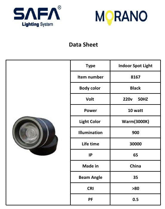 الوصف: سبوت سطحي متحرك بحلقة أو ناشر أكريليك يمنح ضوءاً مريحاً مع إمكانية توجيه الشعاع حيث تحتاج.