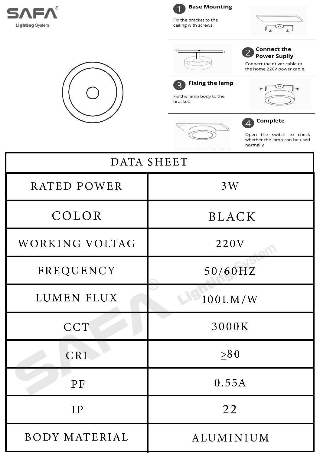 سبوت موب مدور اسود للاضاءة المنزلية والمولات التجارية التيار : 220 فولت الاستطاعة : 5 وات IP :- 23 لون الاضاءة : 3000 k ورم اللون المتوفر : الاسود طول قطر :7.5 سم الضمان 3 سنوات CRI:80 °BEAM ANGLE:35°
